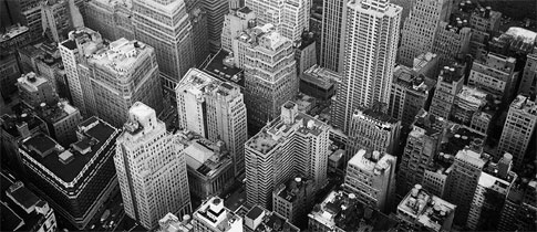 The office towers, cold and tall,