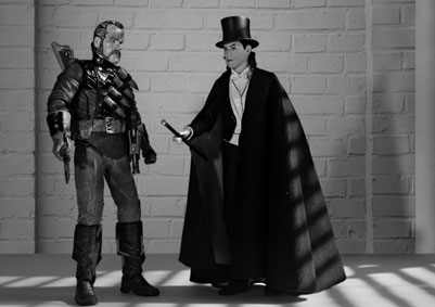 Dracula Lugosi (right) confronts Abraham Van Helsing (left) at a secret passageway into the White House