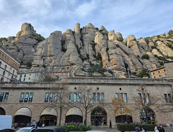 A bright, sunny morning greeted us, with temperatures hovering around 10°C. Wrapped in layers that made us resemble well-insulated parcels, we set off for Montserrat—an omission from our last trip that had clearly been sulking in the background, waiting for redemption. Two train rides and a 20-minute funicular ascent later, we were quite literally on top of the world, lungs negotiating terms with the altitude. From the station, the fish–finger–like mountains jutted skyward, jagged and unapologetic, as if nature had experimented freely and decided this dramatic shape was non-negotiable.